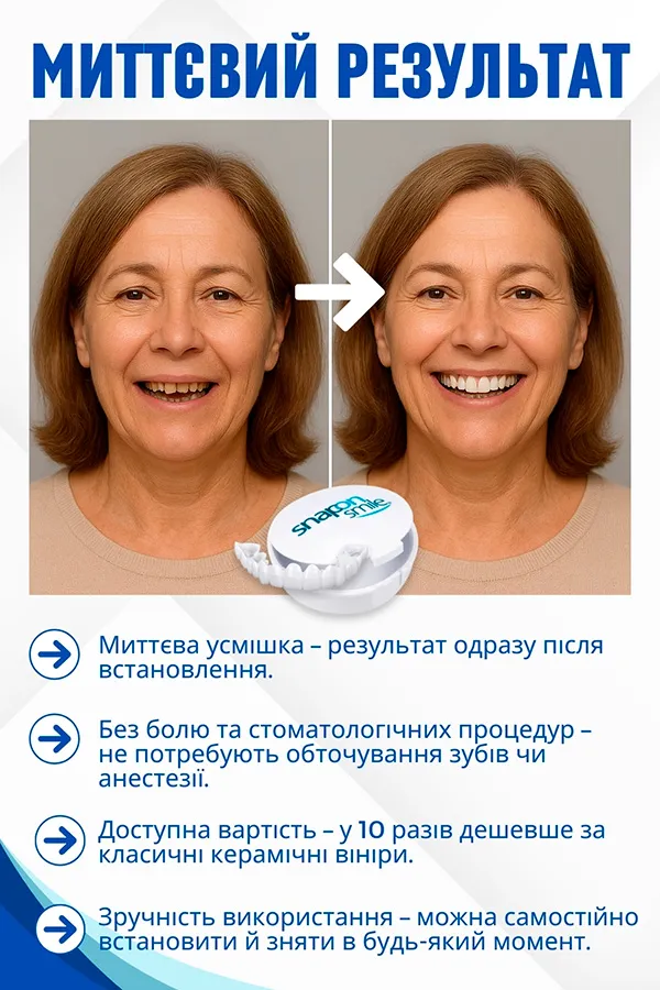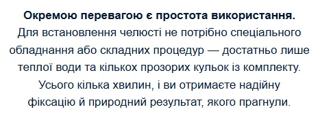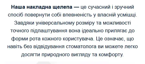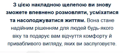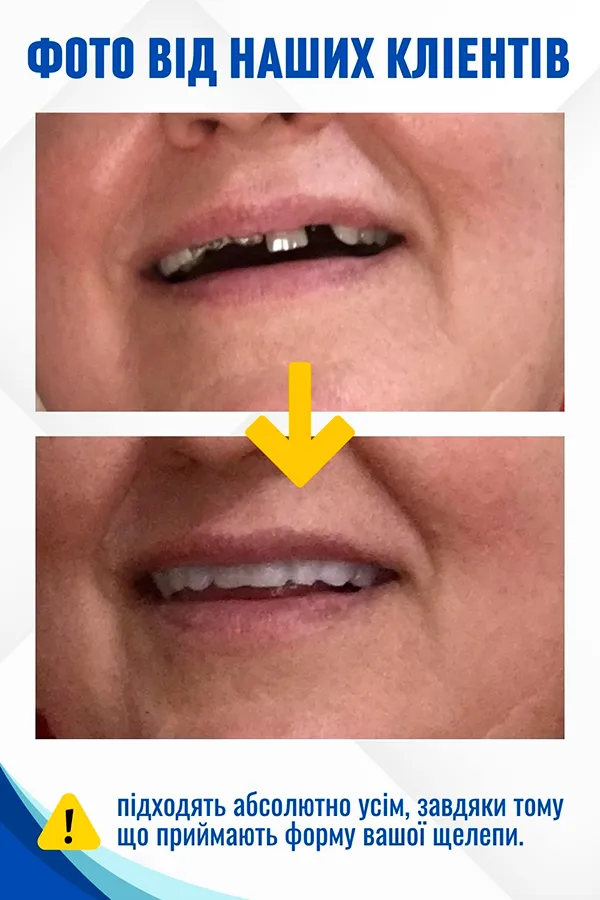 підходить для людей, у яких бракує кількох або навіть усіх передніх зубів.